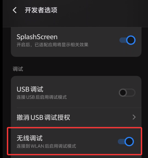 找到“无线调试”,点击(不是只点击开启按钮,而是按钮以外的部分)