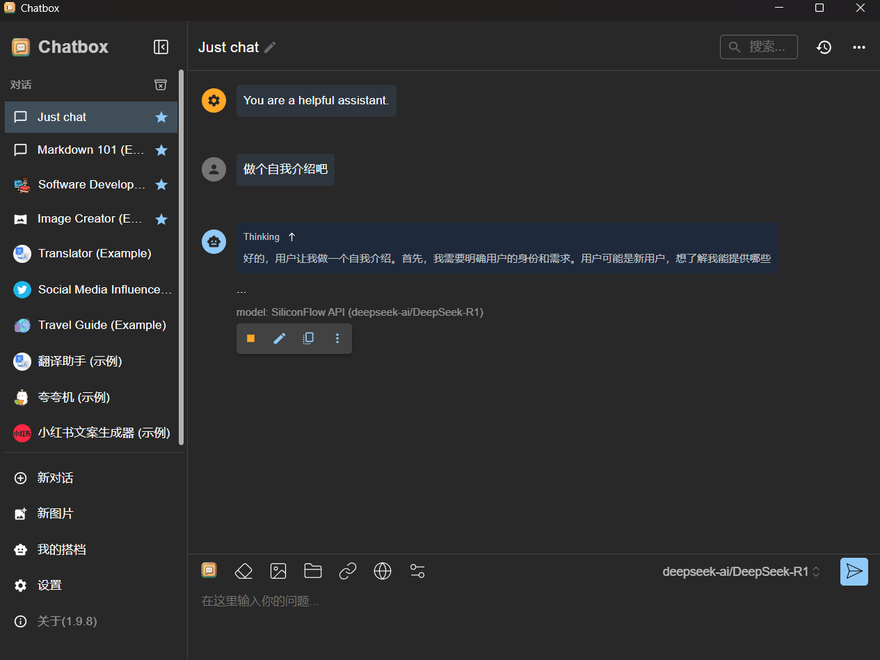 这里我们演示选择 DeepSeek-R1,也就是带有深度思考过程的模型