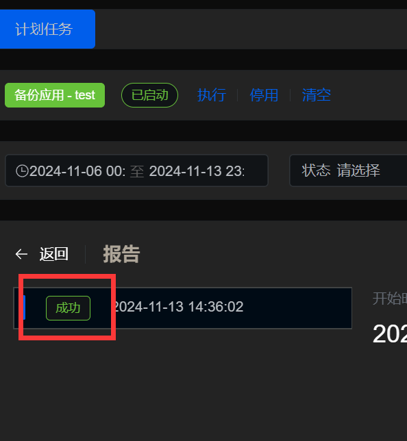 想要立刻执行备份操作可以点击执行,点击报告可以查看备份是否成功