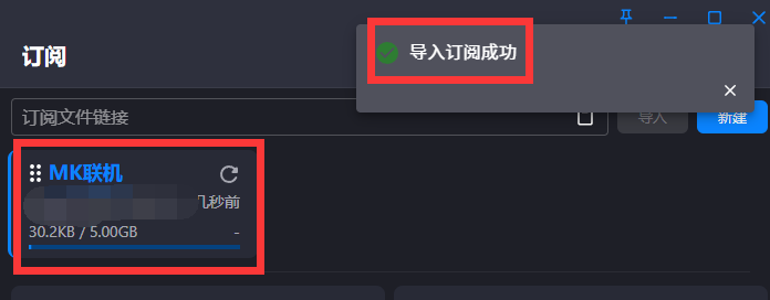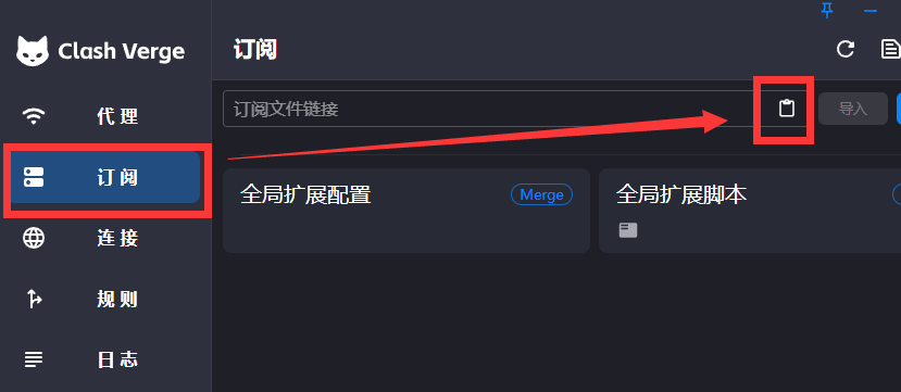复制你获得的“订阅链接”,点击左侧“订阅”栏目,点击“粘贴”按钮